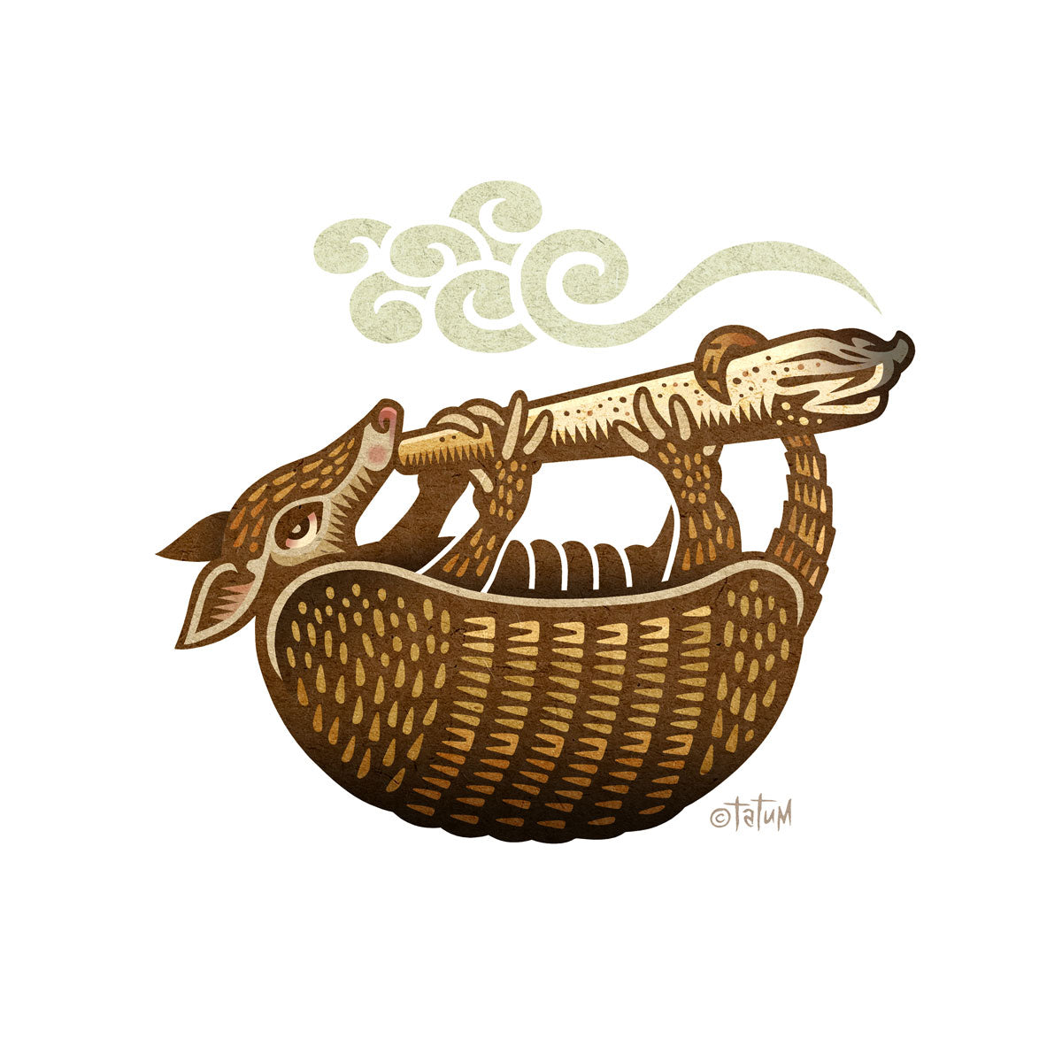 Introducing "Elevated Dillo" by Robert Tatum, 2022's must-have print! Let your worries slip away as you admire this chillaxed armadillo puffing away on a pre-rolled hemp joint--utter relaxation at it's finest. 8x8 giclee printed on archival premium paper with archival inks, unframed and ready to fit a standard 8x8 frame!
